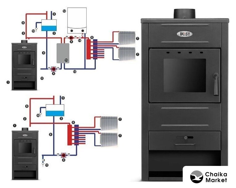 10 кВт, обогрев 150 м³, корпус: сталь/чугун, топка: сталь