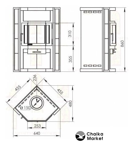 11 кВт, обогрев 170 м³, корпус: керамика/сталь/чугун, топка: сталь