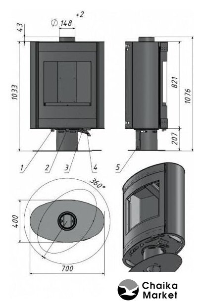 6 кВт, КПД 80%, корпус: керамика/сталь