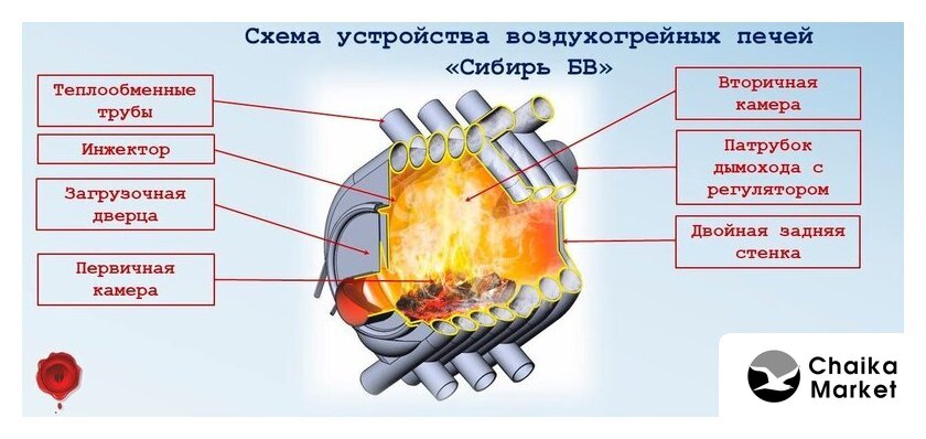 9 кВт, обогрев 140 м³, корпус: керамика/сталь/чугун, топка: сталь