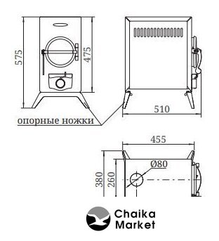 | Диаметр дымохода | 80 мм |