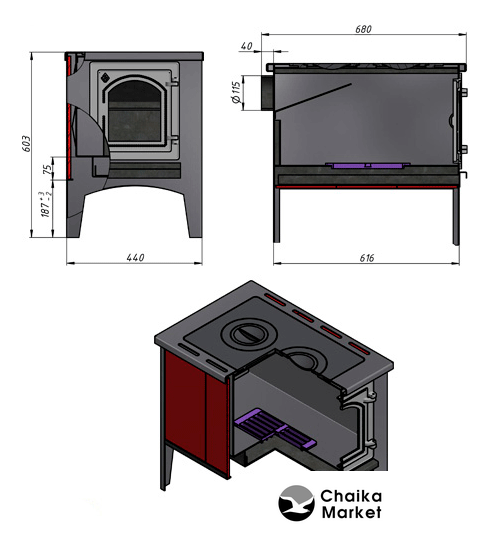 обогрев 120 м³, корпус: сталь/чугун/керамика