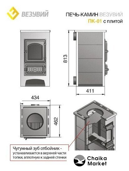8 кВт, обогрев 160 м³, корпус: чугун, топка: чугун