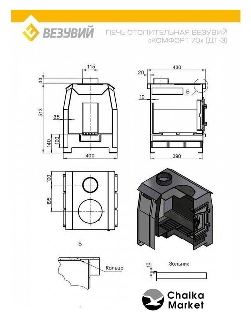 обогрев 100 м³, корпус: керамика/сталь/чугун, топка: сталь