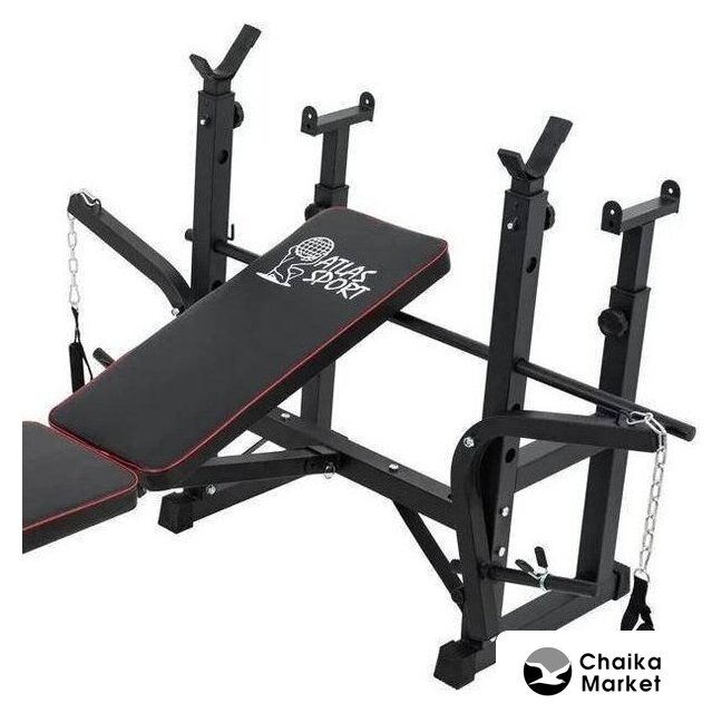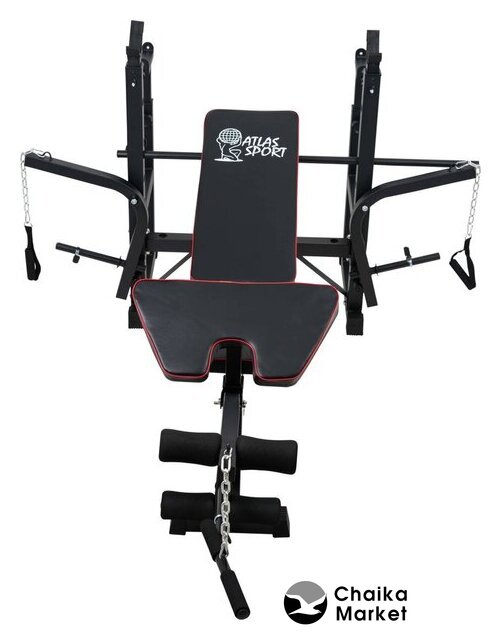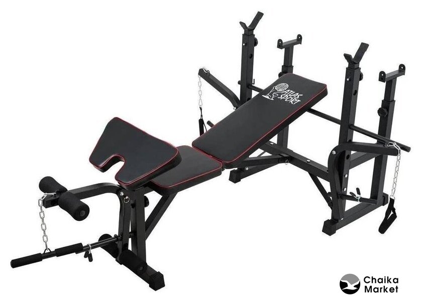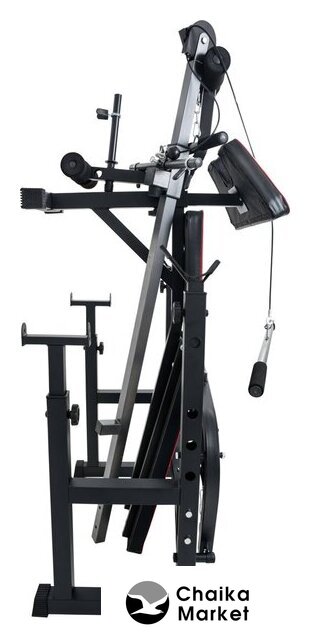 Конструкция | стойка для штанги, скамья для жима штанги, парта Скотта, механизм для баттерфляя, блок для ног, верхняя тяга |