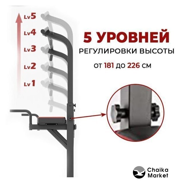 турник с брусьями, для занятий в зале, установка напольная, максимальный вес пользователя: 130 кг, сталь, 63x203 см