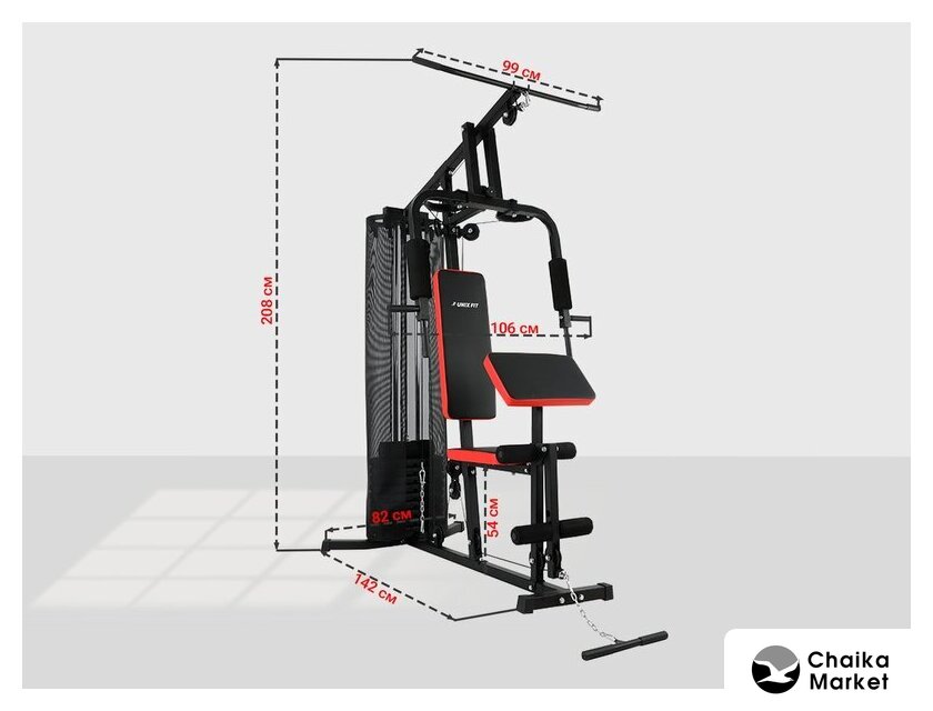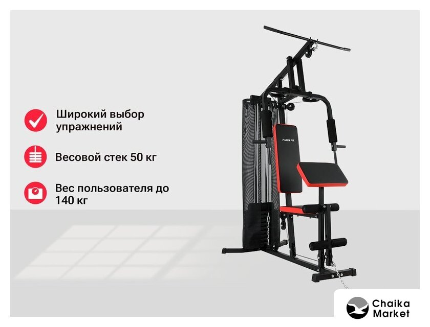 комплекс, для занятий дома, установка напольная, максимальный вес пользователя: 140 кг, сталь, 112x208 см