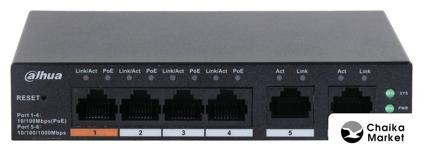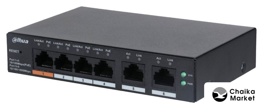 неуправляемый, настольный, матрица 1 Гбит/с, 4x100Mbit, PoE