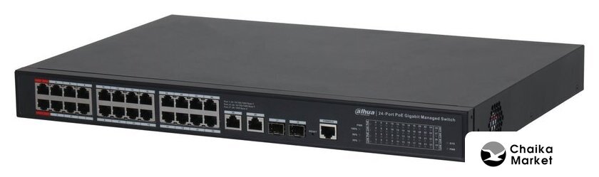 настраиваемый (smart), настольный/стоечный, матрица 56 Гбит/с, 41.7 Mpps, 24xGbit, 4xGbit/SFP, PoE, бюджет 193 Вт