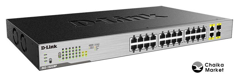 неуправляемый, настольный/стоечный, матрица 8.8 Гбит/с, 6.55 Mpps, 24x100Mbit, 2xGbit/SFP, PoE, бюджет 375 Вт