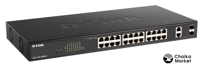 неуправляемый, стоечный, матрица 52 Гбит/с, 38.69 Mpps, 24xGbit, 2xGbit/SFP, PoE, бюджет 370 Вт