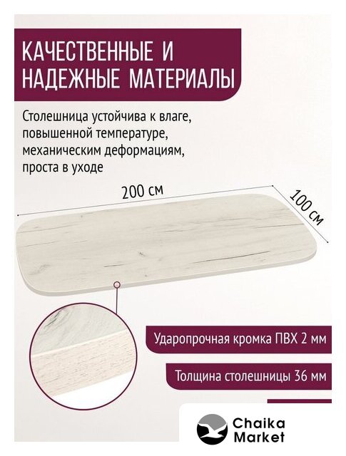 столешница, овальная форма, 1800x1000 мм, материал: ЛДСП (столешница)