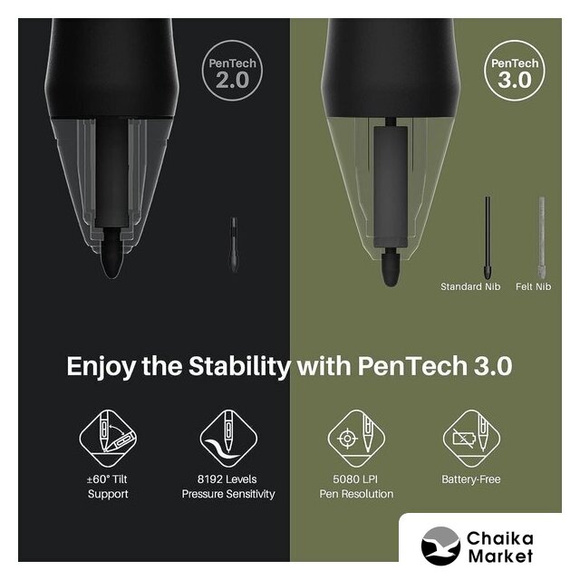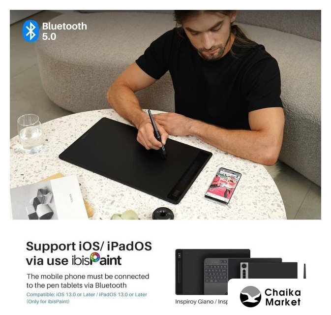беспроводное + проводное подключение, перо, 5080 lpi, уровней давления: 8192, интерфейс USB Type-C/Bluetooth