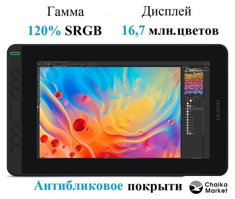 перо, 5080 lpi, 8192 уровней давления, экран 13.3" 1920 x 1080, интерфейс USB Type-C