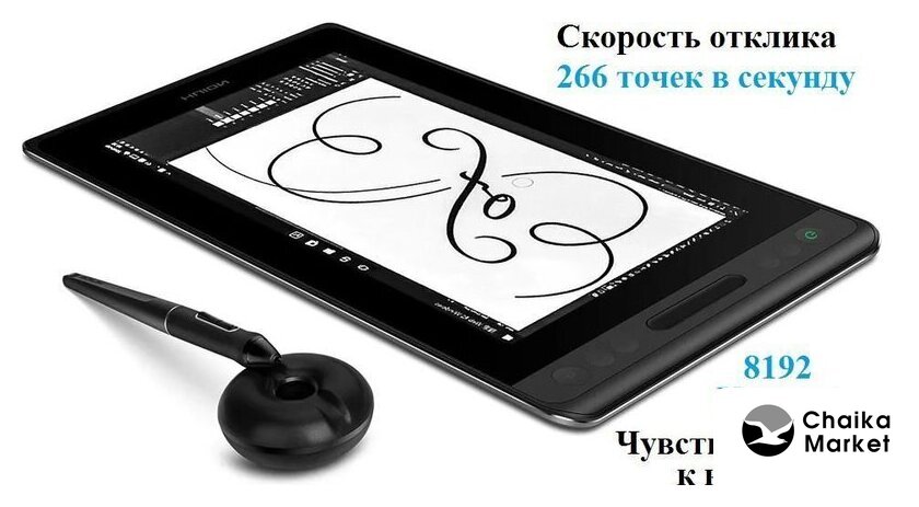 перо, 5080 lpi, 8192 уровней давления, экран 13.3" 1920 x 1080, интерфейс USB Type-C
