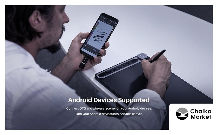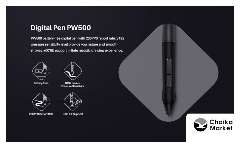 Комплект поставки | - графический планшет;- пассивное перо со сменными наконечниками;- держатель для пера;- USB адаптеры;- беспроводной ресивер;- USB-C кабель;- документация; |