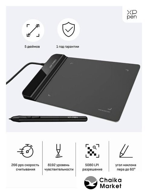 проводное подключение, перо, 5080 lpi, уровней давления: 8192, интерфейс USB Type-A/USB Type-C/microUSB