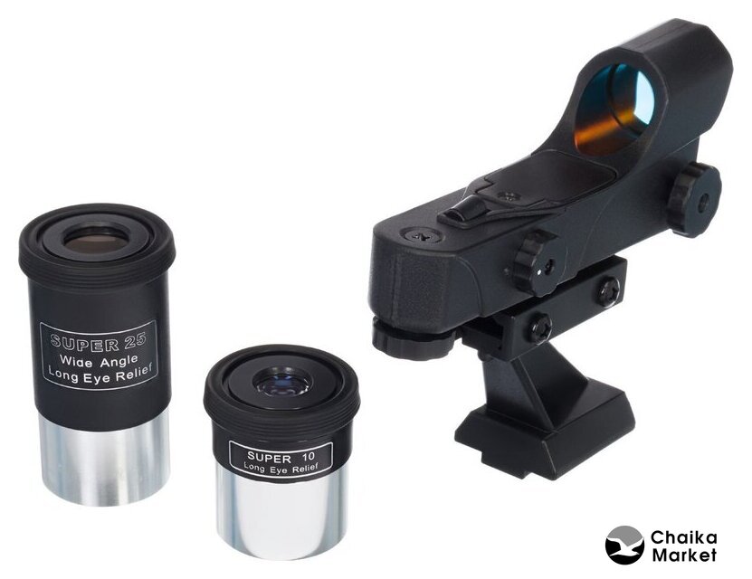 рефлектор Ньютона, диаметр: 130 мм, фокусное расстояние: 900 мм, относительное отверстие: 1/6.9, экваториальная (EQ) монтировка, окуляры 10 мм/25 мм
