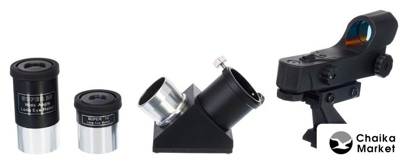 | Комплект поставки | Телескоп на настольной автоматизированной монтировке Добсона; Окуляр Super 10 мм, 1,25''''; Окуляр Super 25 мм, 1,25''''; Диагональное зеркало, 1,25''''; Искатель с красной точкой; Инструкция по эксплуатации и гарантийный талон |
