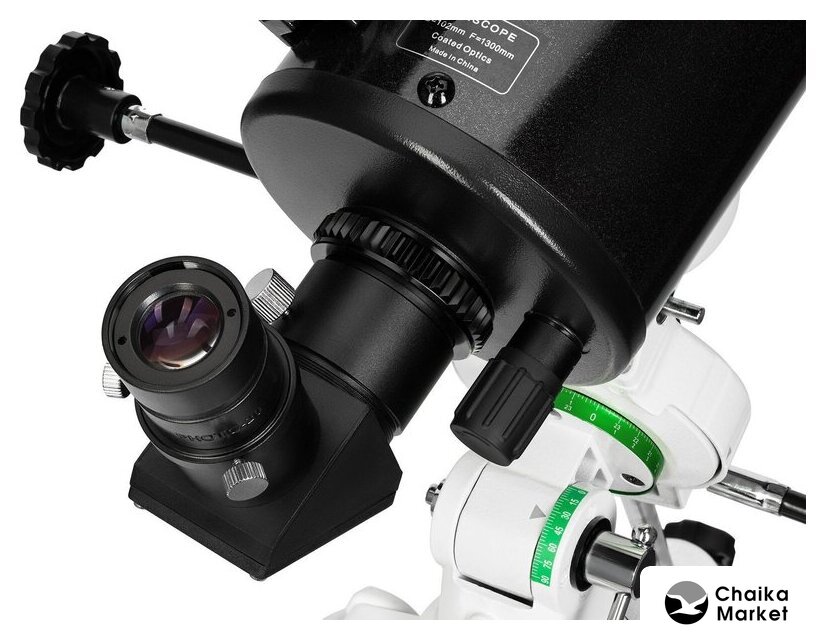 Максутов-Кассегрен, диаметр: 102 мм, фокусное расстояние: 1300 мм, относительное отверстие: 1/12.5, экваториальная (EQ) монтировка, окуляры 10 мм/20 мм