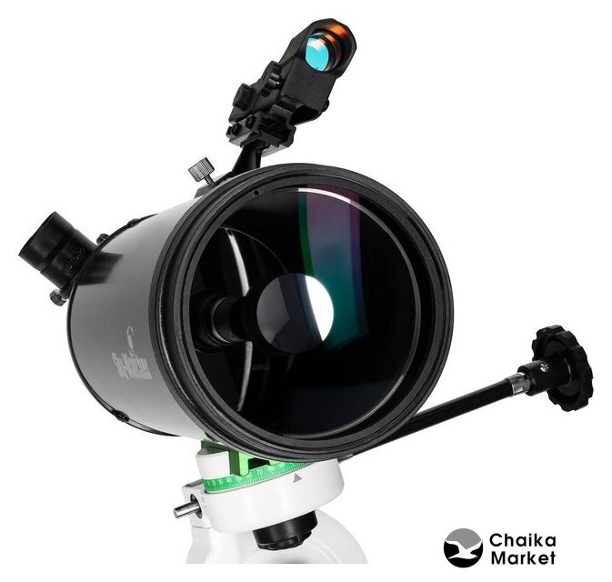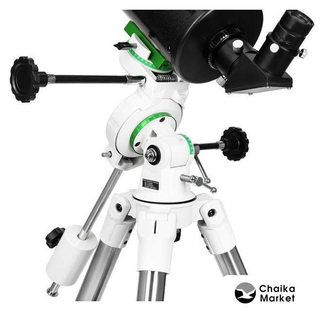 | Комплект поставки | Оптическая труба телескопа, Окуляр PHOTO 10 мм, 1,25", Окуляр PHOTO 20 мм, 1,25", Диагональное зеркало 90°, 1,25", Искатель с красной точкой (Red Dot), Экваториальная монтировка EQ2, Ручки тонких движений, Противовес, Штанга противовеса, Стальная тренога, Лоток для аксессуаров, Адаптер для смартфона, Инструкция по эксплуатации и гарантийный талон |
