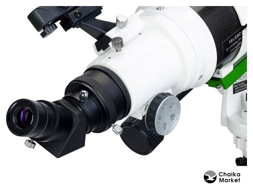ахроматический рефрактор, диаметр: 120 мм, фокусное расстояние: 600 мм, относительное отверстие: 1/5, экваториальная (EQ) монтировка, окуляры 10 мм/25 мм