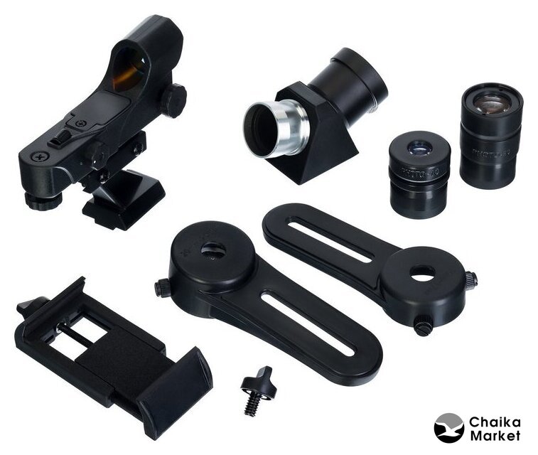 | Комплект поставки | Оптическая труба телескопа, Окуляры PHOTO 10 и 20 мм, 1,25", Призма оборачивающая 45°, Искатель с красной точкой (Red Dot), Монтировка азимутальная AZ PRONTO, Тренога алюминиевая, Удлинительная трубка для установки длиннофокусных труб телескопов, Лоток для аксессуаров, Ручки тонких движений (2 шт.), Инструкция по эксплуатации и гарантийный талон |