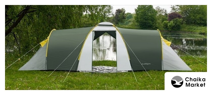 кемпинговая, весна/лето/осень, 4-местная, 2 входа, 1 комната, противомоскитная сетка, тамбур, штормовые оттяжки, ДхШхВ: 375x250x175 см