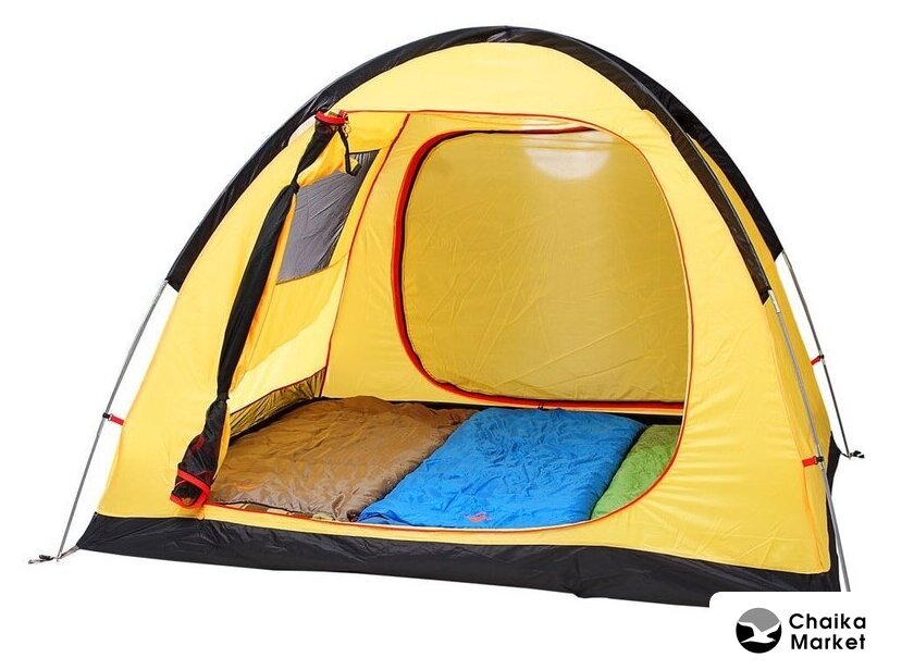 кемпинговая, весна/лето/осень, 2-местная, 1 вход, 1 комната, противомоскитная сетка, тамбур, штормовые оттяжки, ДхШхВ: 360x155x110 см