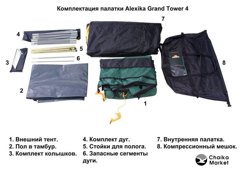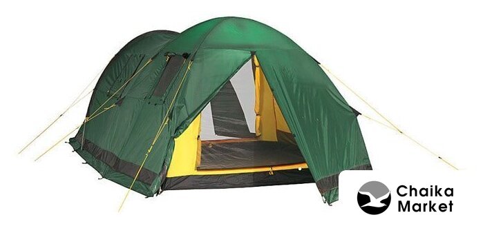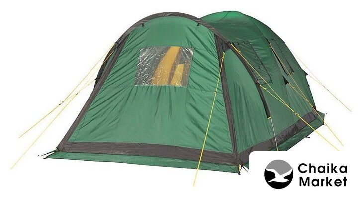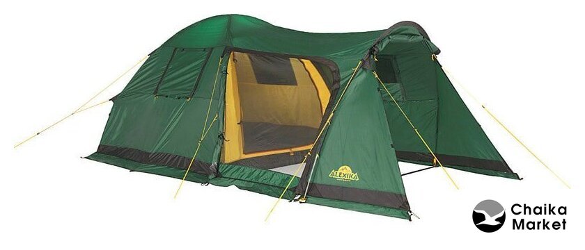 кемпинговая, весна/лето/осень, 4-местная, 2 входа, 1 комната, противомоскитная сетка, тамбур, штормовые оттяжки, ДхШхВ: 435x240x190 см