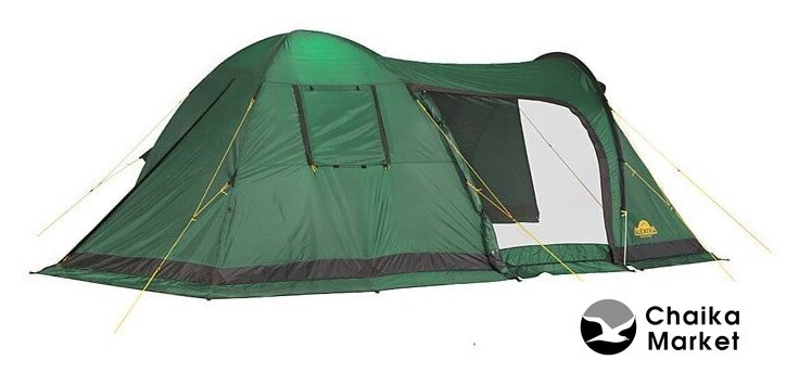кемпинговая, лето, 7-местная, 1 вход, 1 комната, противомоскитная сетка, штормовые оттяжки, ДхШхВ: 330x330x210 см