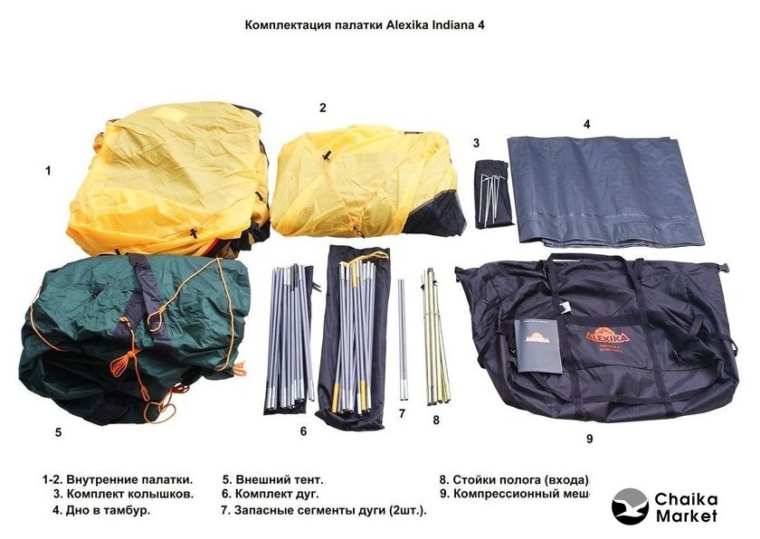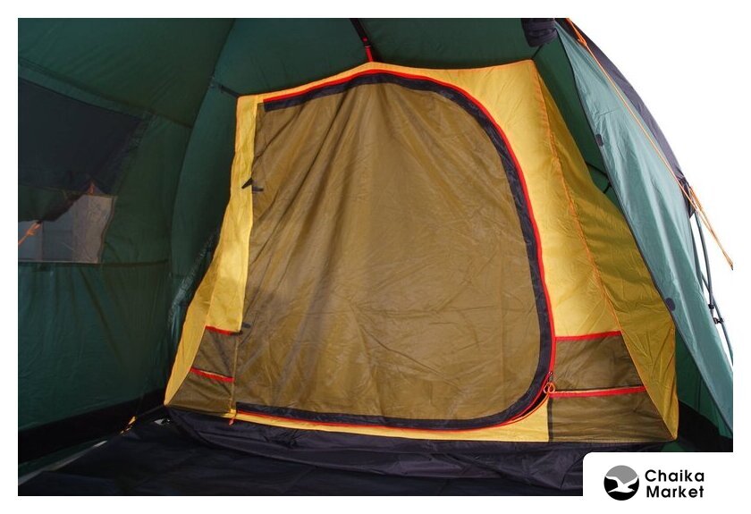 кемпинговая, весна/лето/осень, 3-местная, 2 входа, 1 комната, противомоскитная сетка, тамбур, штормовые оттяжки, ДхШхВ: 425x185x120 см
