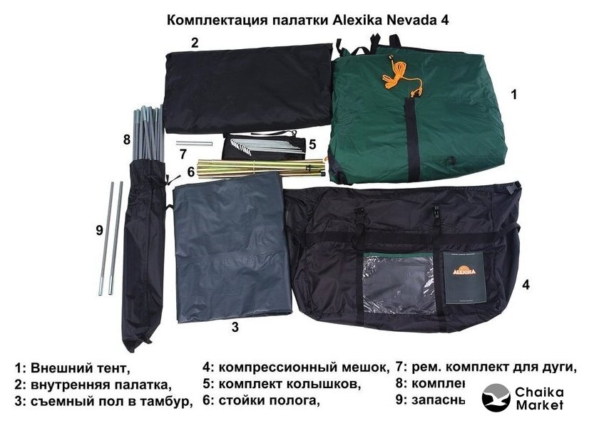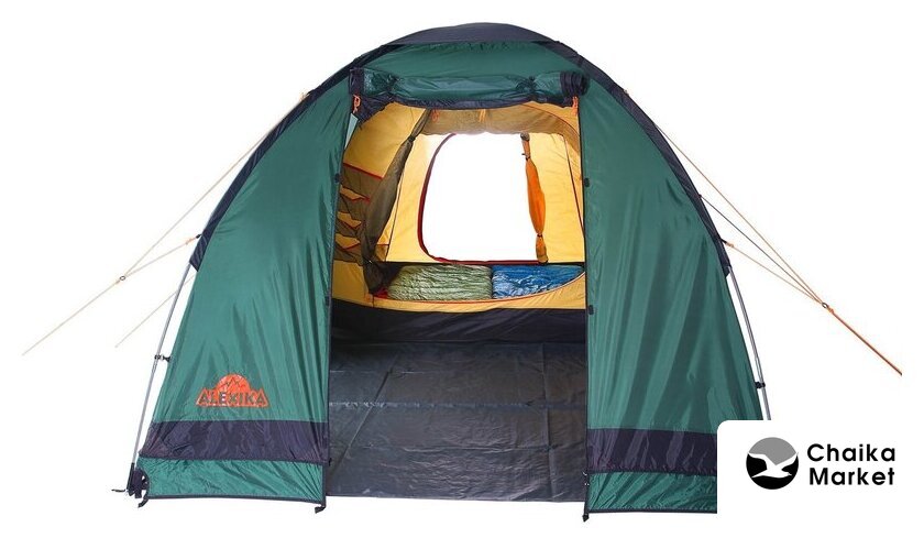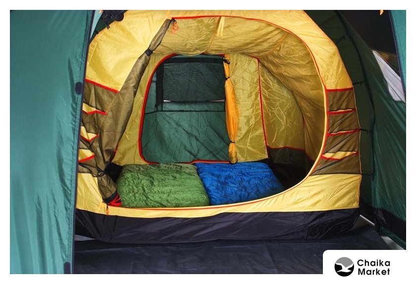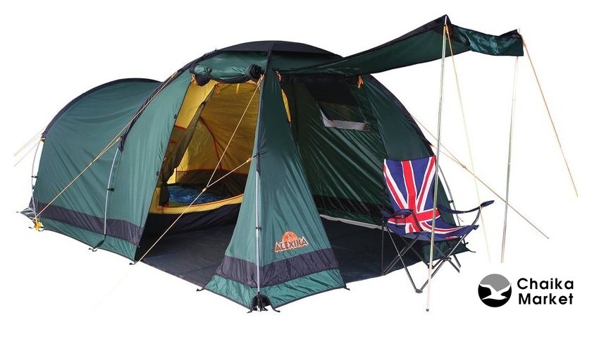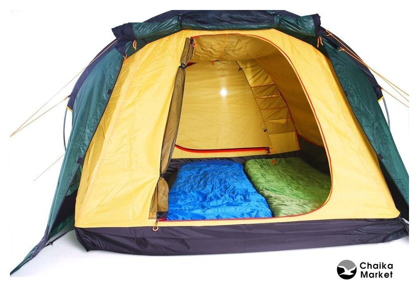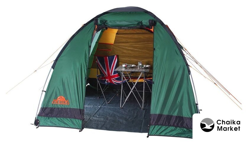кемпинговая, весна/лето/осень, 3-местная, 1 вход, 1 комната, противомоскитная сетка, тамбур, штормовые оттяжки, ДхШхВ: 365x185x120 см