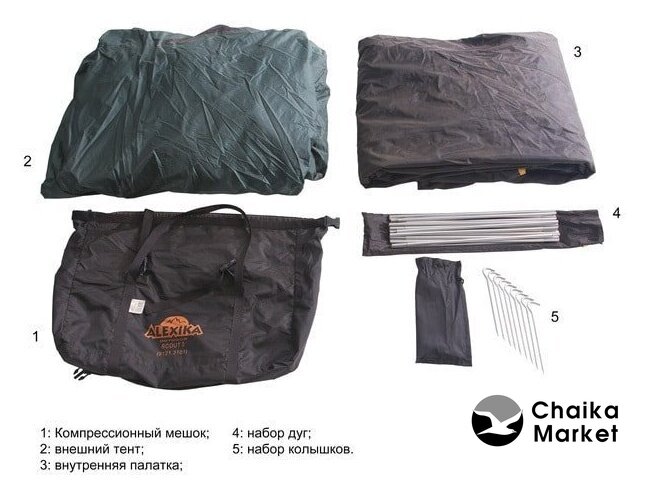 треккинговая, весна/лето/осень, 4-местная, 1 вход, 1 комната, противомоскитная сетка, тамбур, штормовые оттяжки