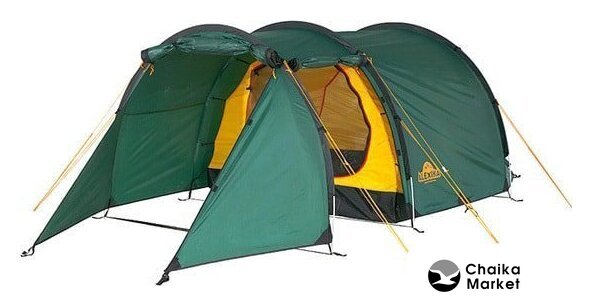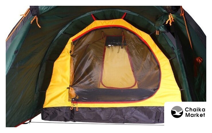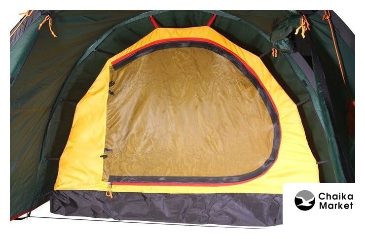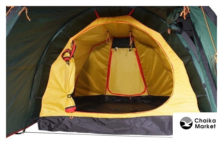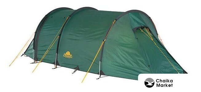 треккинговая, весна/лето/осень, 4-местная, 2 входа, 1 комната, противомоскитная сетка, тамбур, штормовые оттяжки