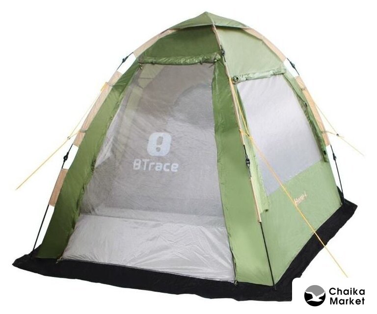треккинговая, весна/лето/осень, 4-местная, 2 входа, 1 комната, противомоскитная сетка, тамбур, штормовые оттяжки