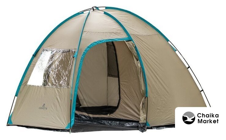 кемпинговая, весна/лето/осень, 4-местная, 1 вход, 1 комната, противомоскитная сетка, штормовые оттяжки, ДхШхВ: 290x190x100 см