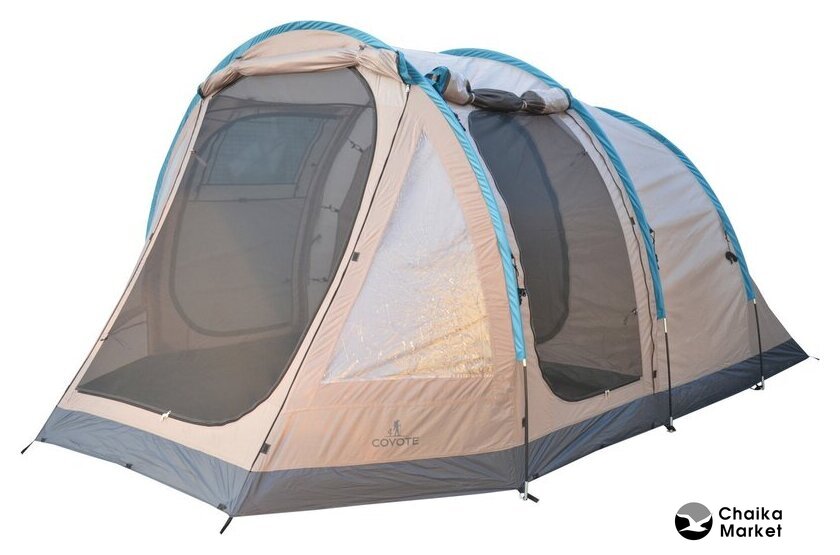 кемпинговая, зима/весна/лето/осень, 4-местная, 2 входа, 1 комната, противомоскитная сетка, тамбур, штормовые оттяжки, ДхШхВ: 365x260x205 см