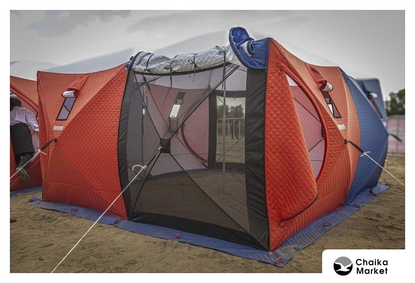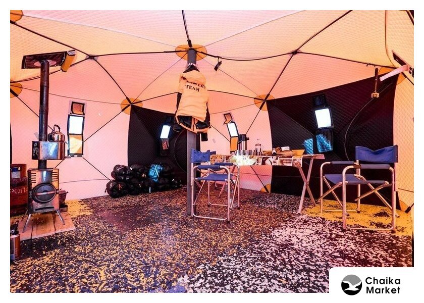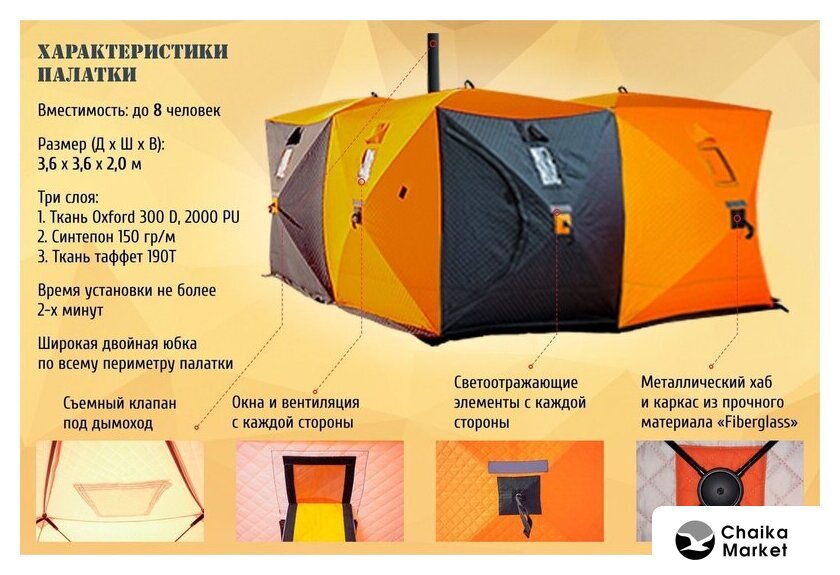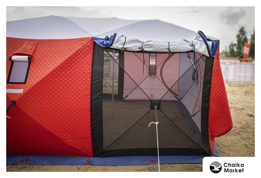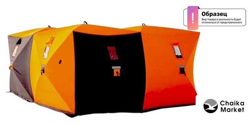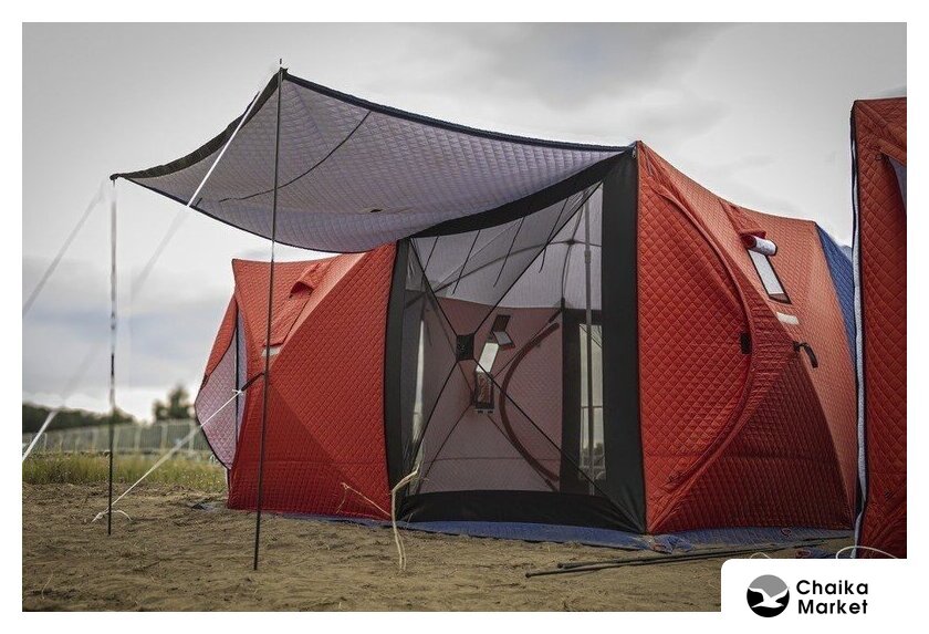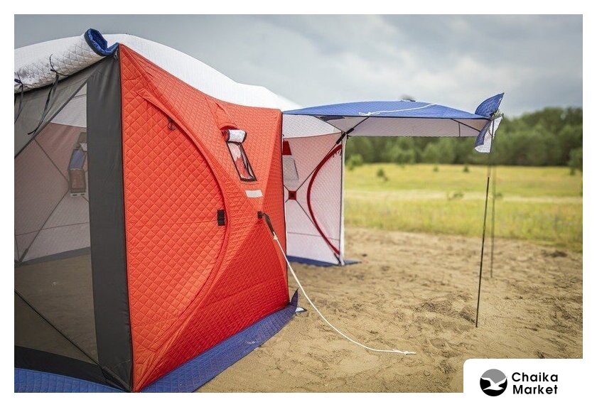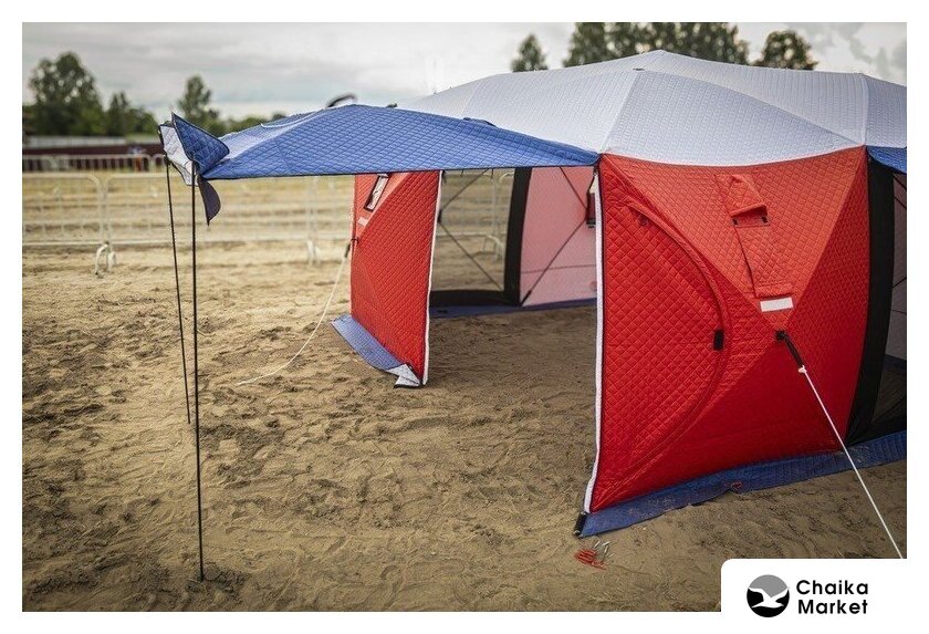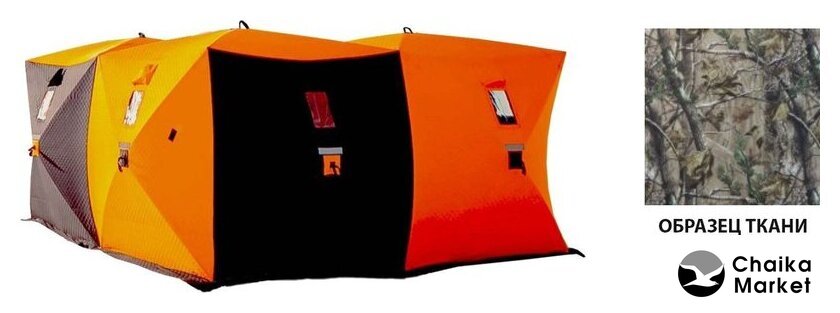 для зимней рыбалки, зима, 5-местная, 3 входа, 1 комната, штормовые оттяжки, ДхШхВ: 360x310x220 см