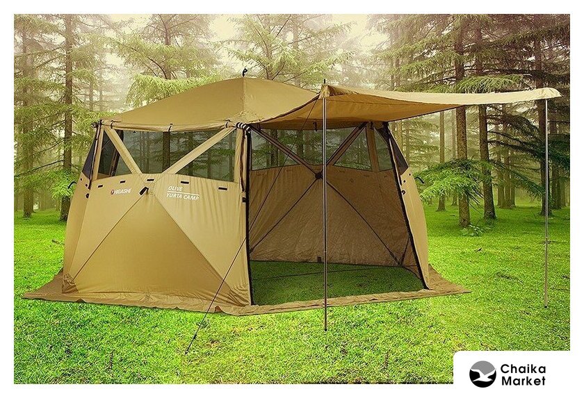 кемпинговая, зима/весна/лето/осень, 4-местная, 2 входа, 2 комнаты, противомоскитная сетка, тамбур, штормовые оттяжки, ДхШхВ: 460x240x180 см