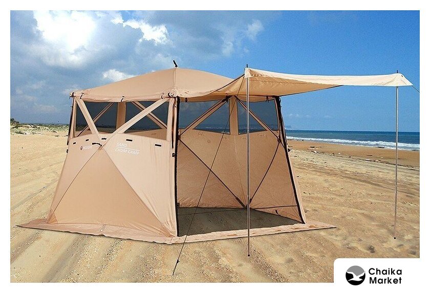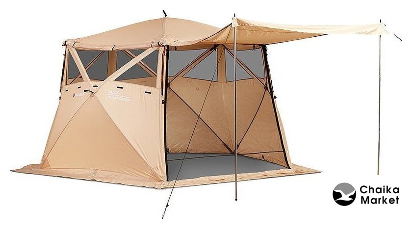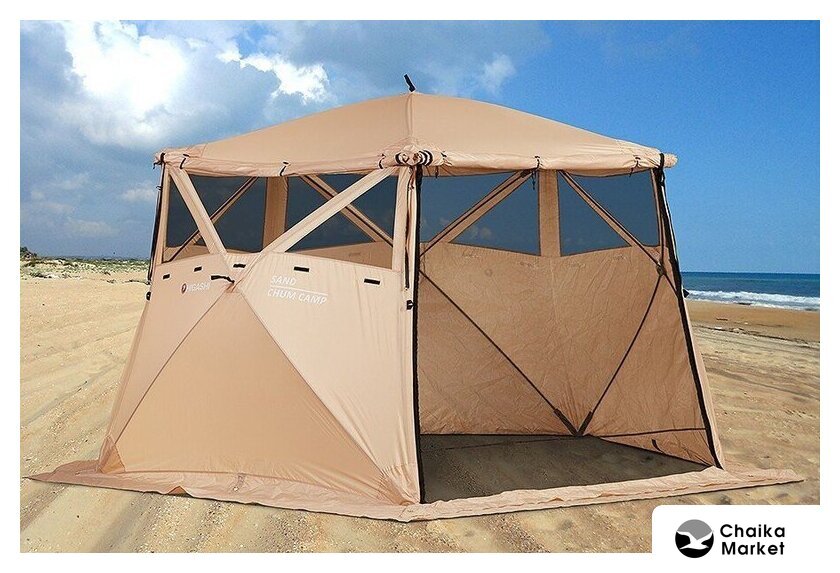 кемпинговая, лето, 7-местная, 1 вход, 1 комната, противомоскитная сетка, штормовые оттяжки, ДхШхВ: 330x330x210 см