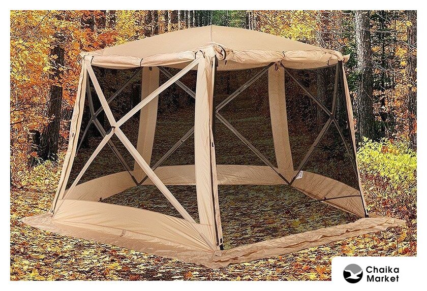 кемпинговая, лето, 7-местная, 1 вход, 1 комната, противомоскитная сетка, штормовые оттяжки, ДхШхВ: 330x330x210 см