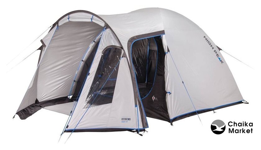 кемпинговая, весна/осень, 4-местная, 3 входа, 2 комнаты, противомоскитная сетка, тамбур, штормовые оттяжки, ДхШхВ: 730x250x180 см