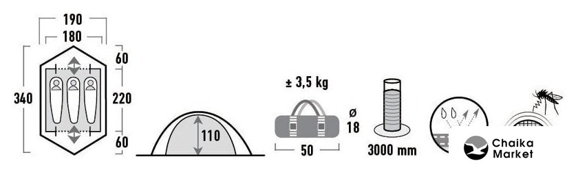 Водостойкость тента | 3 000 мм вод. ст. |