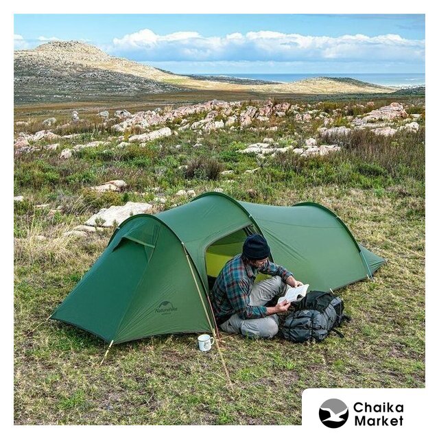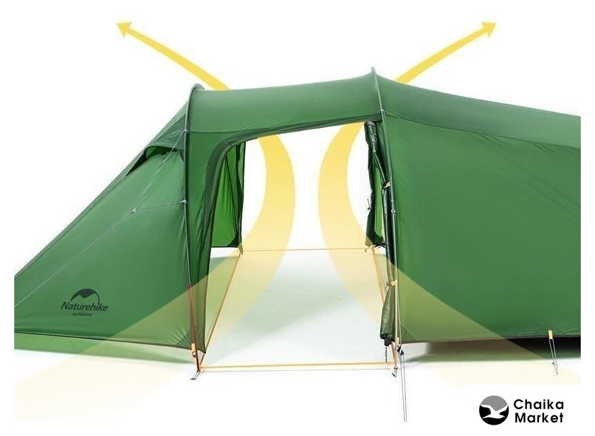 кемпинговая, весна/осень, 4-местная, 3 входа, 2 комнаты, противомоскитная сетка, тамбур, штормовые оттяжки, ДхШхВ: 730x250x180 см