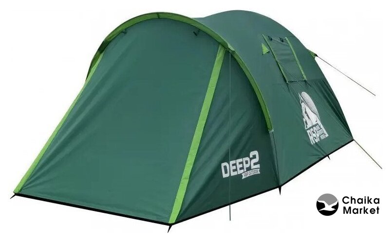 треккинговая, весна/лето/осень, 2-местная, 2 входа, 1 комната, противомоскитная сетка, тамбур, штормовые оттяжки, ДхШхВ: 250x220x120 см