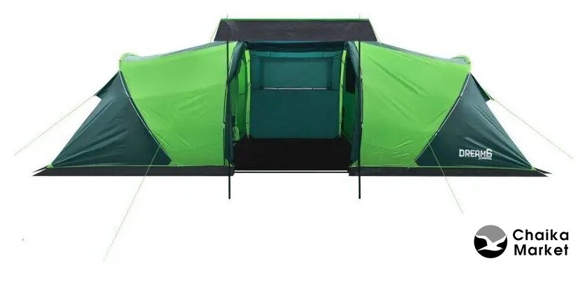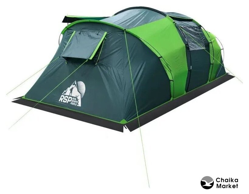 кемпинговая, весна/лето/осень, 4-местная, 2 входа, 2 комнаты, противомоскитная сетка, тамбур, штормовые оттяжки, ДхШхВ: 410x230x190 см
