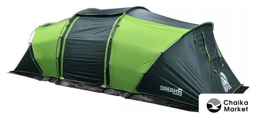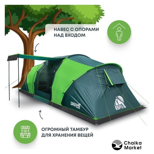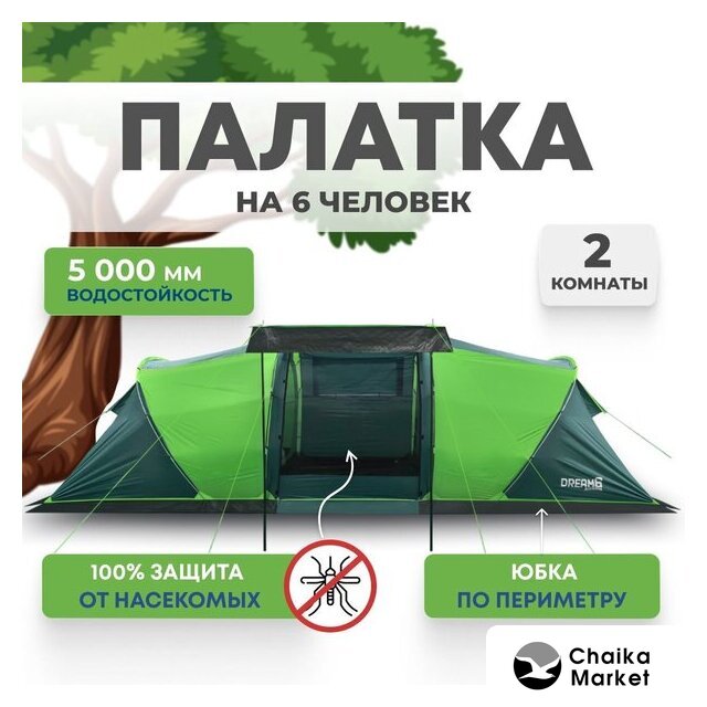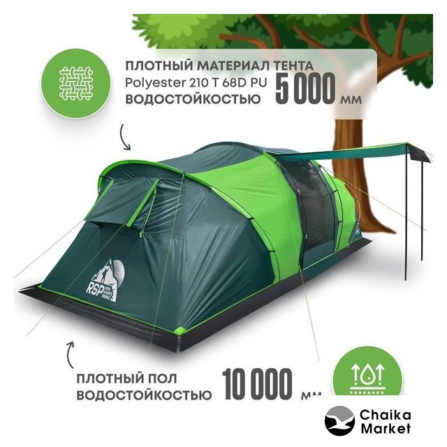 кемпинговая, весна/лето/осень, 5-местная, 1 вход, 2 комнаты, противомоскитная сетка, тамбур, штормовые оттяжки, ДхШхВ: 490x230x190 см