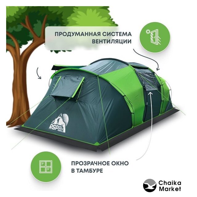 кемпинговая, весна/осень, 4-местная, 2 входа, 1 комната, противомоскитная сетка, тамбур, ДхШхВ: 460x220x145 см