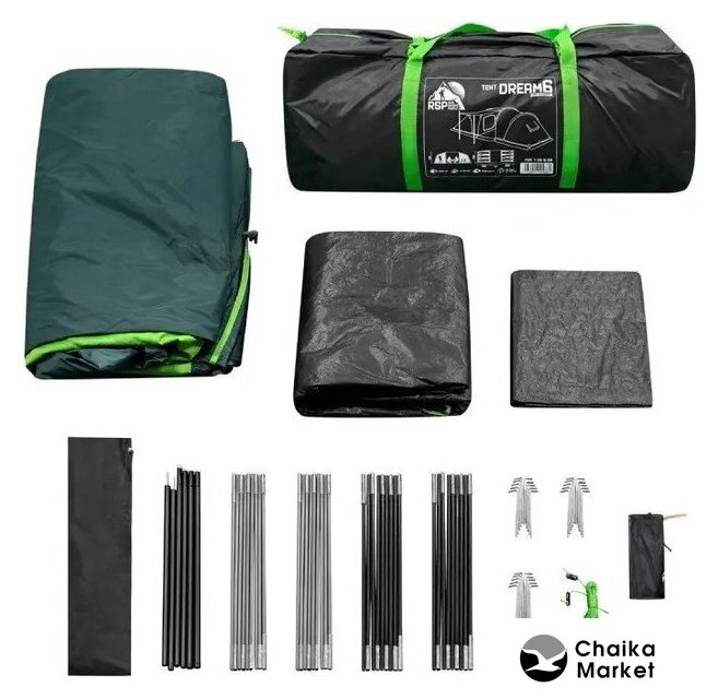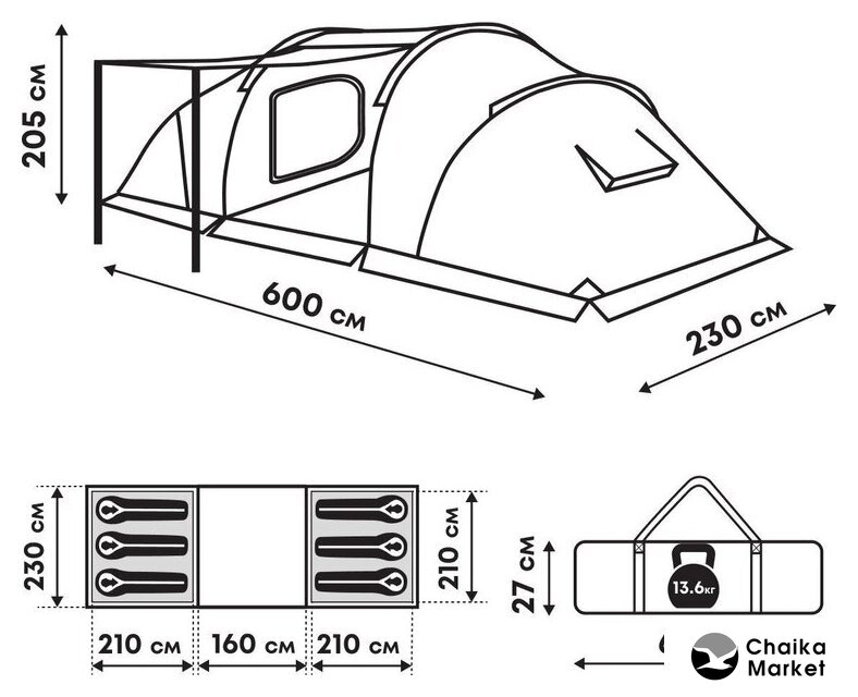 кемпинговая, весна/лето/осень, 2 входа, 1 комната, противомоскитная сетка, штормовые оттяжки, ДхШхВ: 300x300x220 см
